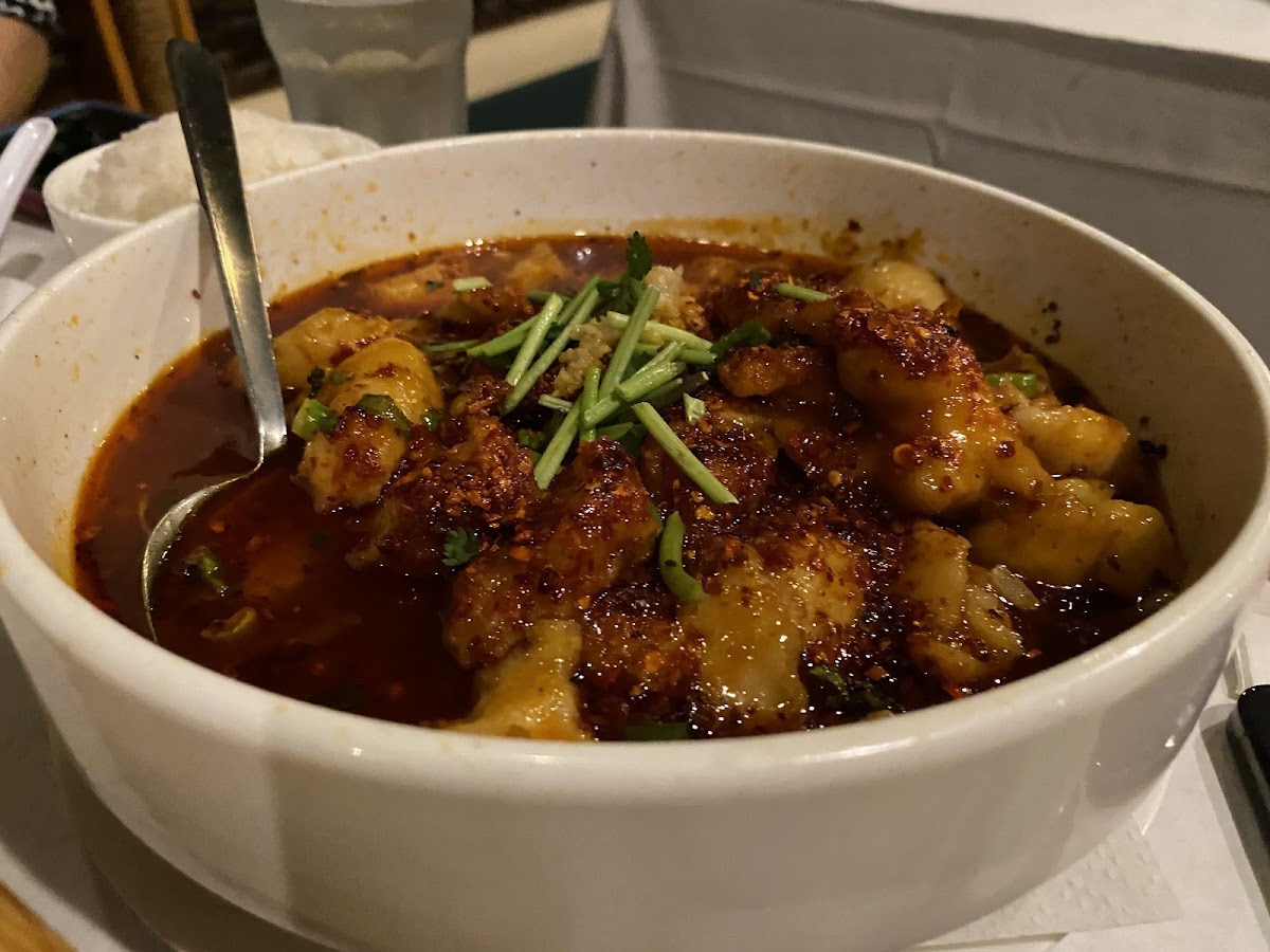 Delicious food with a very pleasant dining space and wonderfully inviting service. We got the Pork Belly, Fried Cumin Beef, and amazing Fish Fillet Boil in Chili. They were able to tone down the spiciness for my friends, but still kept it delicious. Will definitely come back more often.